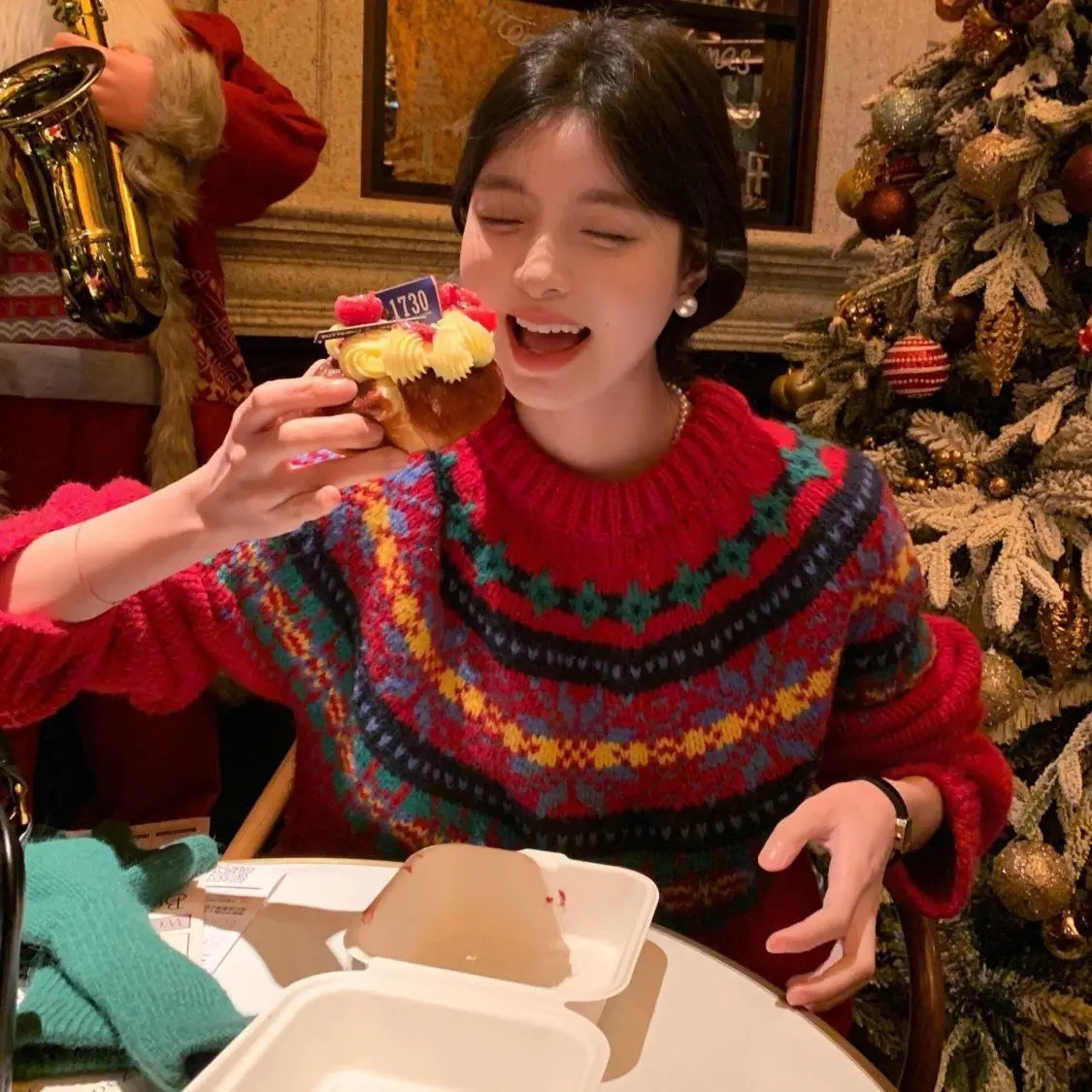 Megan | Jersey de punto jacquard con cuello redondo y estampado navideño para mujer