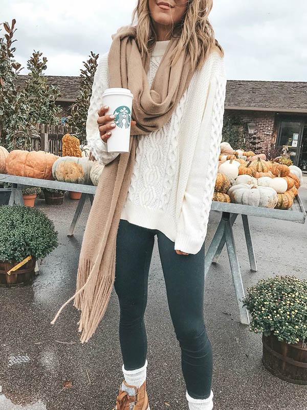 Acogedor jersey blanco de manga larga para la temporada de frío
