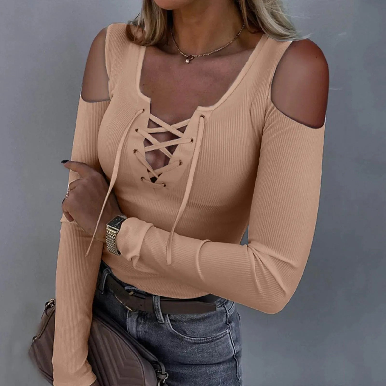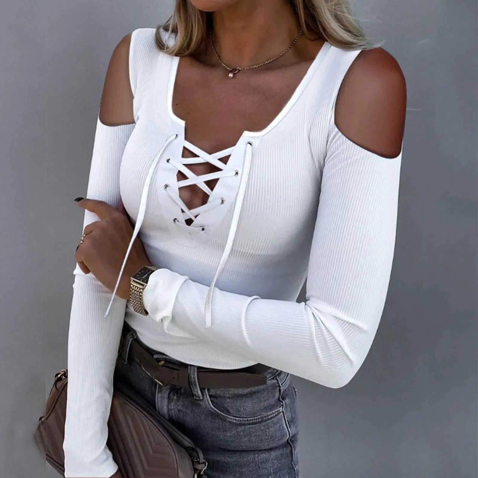 Top femenino con cortes en los hombros